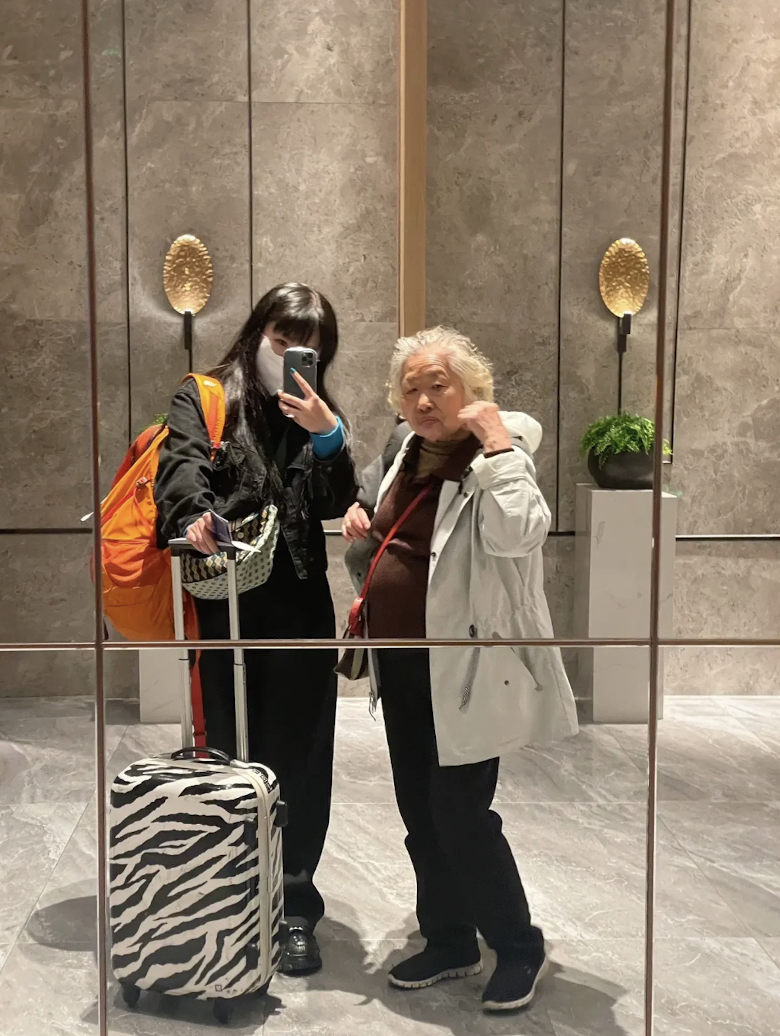 當一個白髮老太太指導孫女擺pose,路過的人們總會忍不住停下來圍觀。所以有時阿珍給小柒拍照,小柒會不好意思。