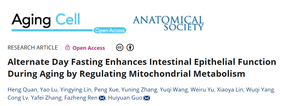 [本文的名稱是《Alternate Day Fasting Enhances Intestinal Epithelial Function During Aging by Regulating Mitochondrial Metabolism》,發表於《Aging Cell》期刊,通訊作者是中國農業大學郭慧媛教授、中國工程院任發政院士。第一作者是Heng Quan。本研究資助來源:國家重點研發計劃(2022YFC3602105)、北京市傑出青年科學家計劃 ( JWZQ2024101019)。]