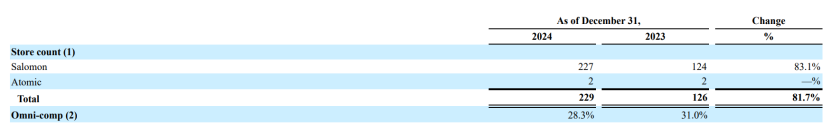 在渠道擴張上,尤其DTC部分。報告顯示,2024年,薩洛蒙所在部門門店同比猛增82%至229家,增速遠超始祖鳥所在部門19%。鄭捷表示,2024年,薩洛蒙在大中華區的門店總數達196家;2025年,該品牌計劃還要再開100家新店。