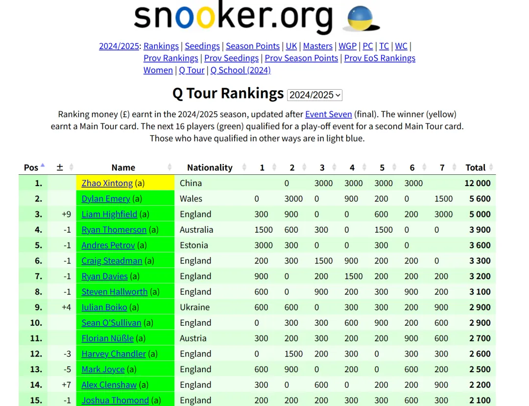 但無論如何,趙心童只能重頭開始,去年解除禁賽之後,由於錯過了24年夏天的職業資格比賽,趙心童只能賽季中進行的通過Q-Tour(業餘巡迴賽)迴歸職業。他在參加的五站比賽中四次奪冠,展現了良好的狀態,也提前鎖定了下賽季的職業資格,同時這也讓他能夠參加本賽季的英錦賽和世錦賽。
