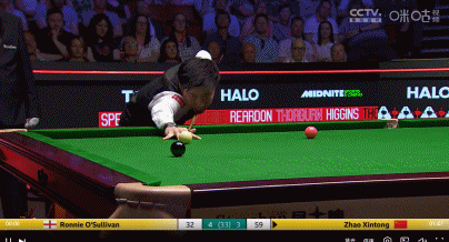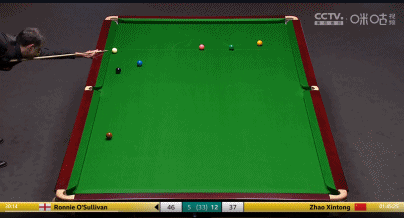 趙心童倒是穩紮穩打,全場最炸裂的就是這一杆把球袋打爆了……