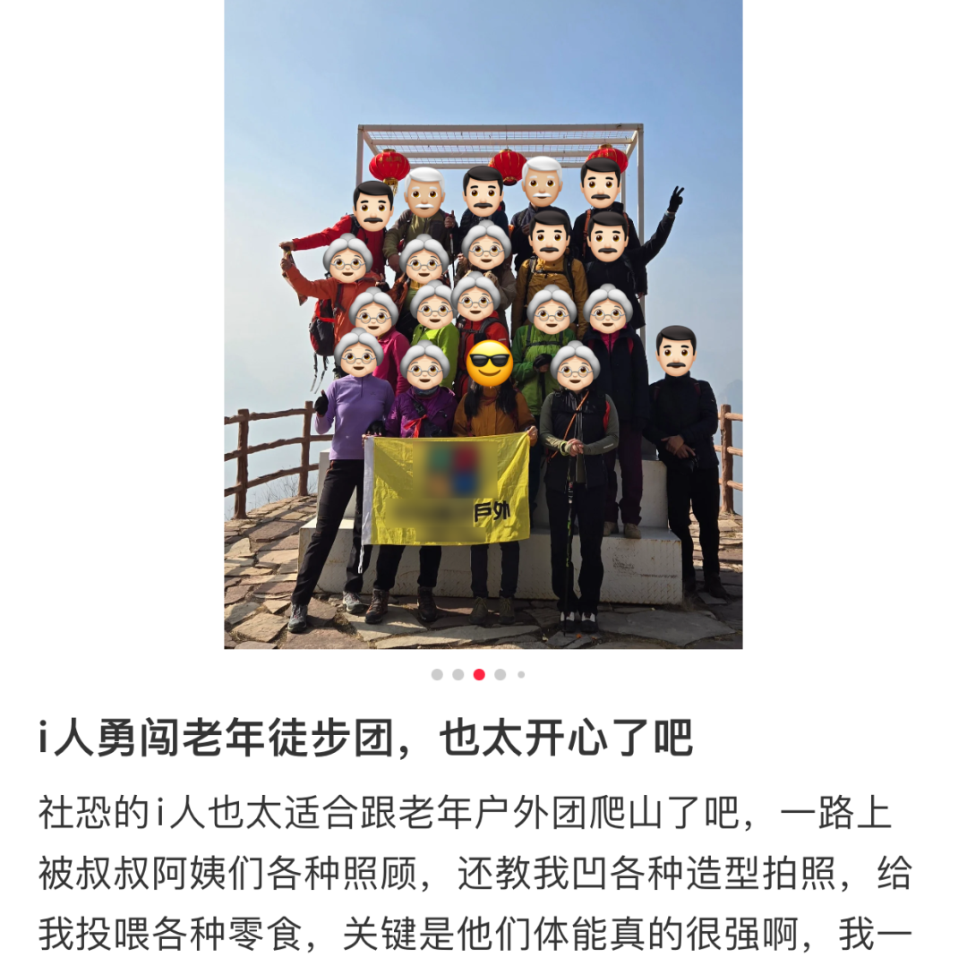 以前無論是為了相親或鍛鍊身體,你似乎總得搶着表現點啥,才能拔得頭籌;如今,受夠了窩囊氣的打工人早就被老年户外團寵成了胚胎。