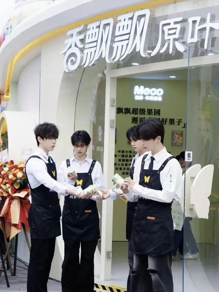 就連“奶茶祖師爺”香飄飄都想憑着“美男計”再度翻紅,在杭州、成都的奶茶快閃店裏都邀請了高顏值網紅擔任過店員,用購買奶茶可以與帥哥合照的噱頭吸引消費者。除了香飄飄外,大部分新茶飲品牌如霸王茶姬、喜茶都開展過一日店長活動,調色師、丸美、怡寶、來伊份甚至連聯華超市也都借“一日店長”來討好過年輕消費者們。