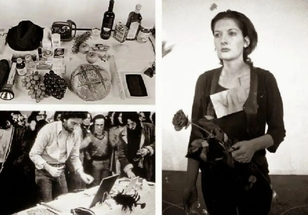 瑪麗娜・阿布拉莫維奇在《節奏0》中,將72種道具交給觀眾任意處置,最終被刀抵住喉嚨。