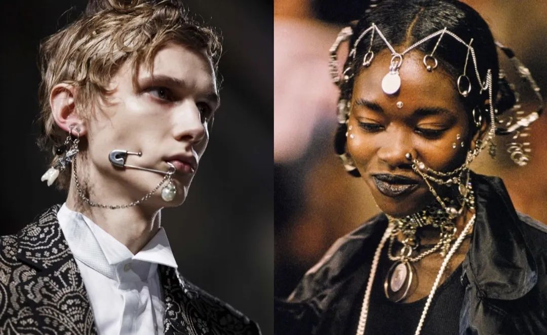 Vivienne Westwood讓模特帶着眉釘走秀,Rick Owens 2025年春夏秀場的200名模特里,80%都有穿孔。