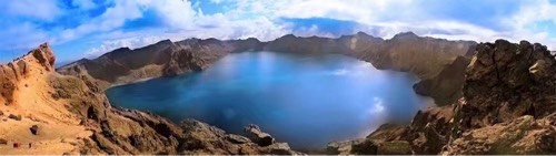 - 我去過五六次長白山,長白山地區氣候變化特別快,有時候在山下陽光明媚,一上山就會風雲突變,所以上五六次長白山都看不到天池的全貌的大有人在。能夠欣賞天池全景的最佳季節在10月至11月份,那個時候有霧的天氣比較少,從5月份開始到七八月天氣都是非常不穩定的。但是作為一個攝影人來講,突發大雪天氣是拍照的最佳時機,如果準備得當,到天池北坡的氣象站附近的停車場,可以帶一個保暖的睡袋和足夠的厚度的羽絨服。帶足吃的東西和取暖的東西在那兒露營,或者是找個避風的地方等待天空的變化,或許會拍出非常壯美的景色。風雪中的天池應該是最美的,但是能夠在上面逗留的人肯定是意志堅強或者有充足準備的人。我一直盼望着在一個大雪紛飛的季節到天池露營,在晨曦中拍到天池的全景和日出。或許有一隻白狐被我拍到,聽説有的網友拍到了它,發幾張我在天池拍的照片。 還有要拍一張天池的全景圖非常難,一般照相機根本包含不過來。另外,由於人多,好的機位基本找不到,全是人頭。我拍的這個全景圖有一段故事,沒有這個故事我也拍不到。,這張用6張照片接片而成的全景圖,已經成了我很多好朋友客廳裏的壁畫了。