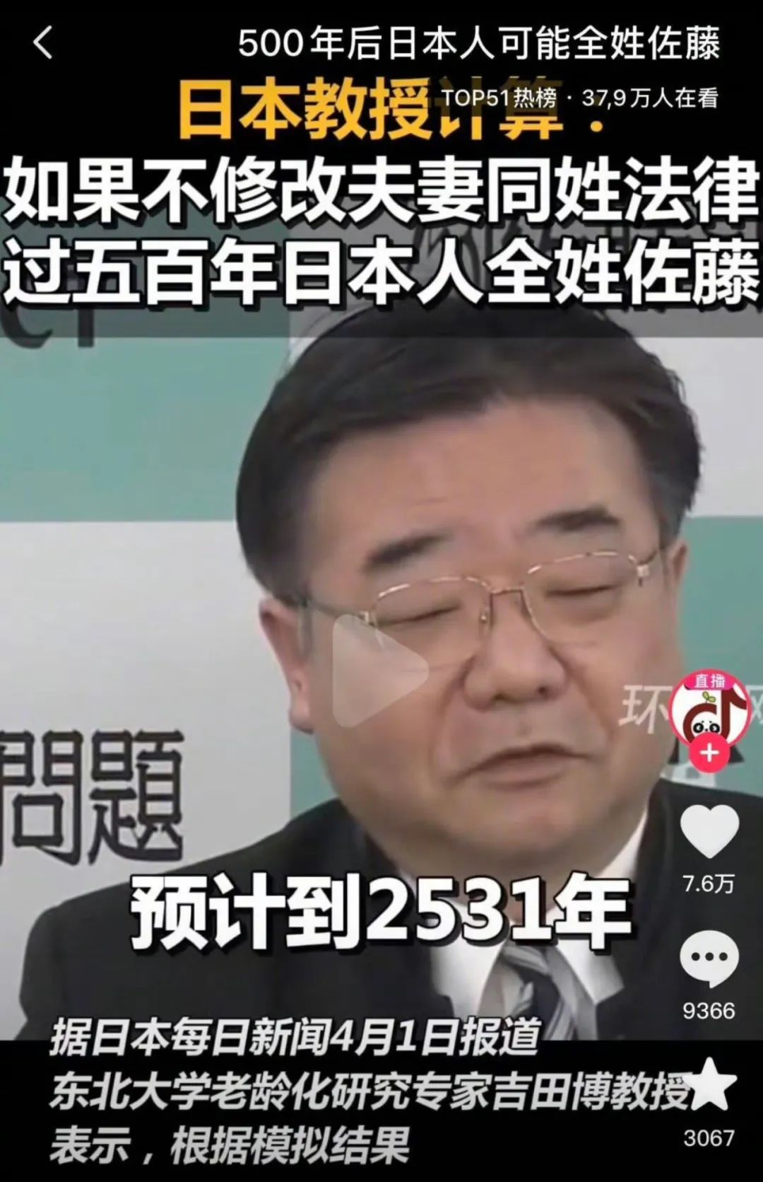 👉生下的孩子會是佐藤的同時,母親也會改姓成了佐藤。這樣就會有越來越多的人姓佐藤,可能500年後日本就會變成佐藤國。