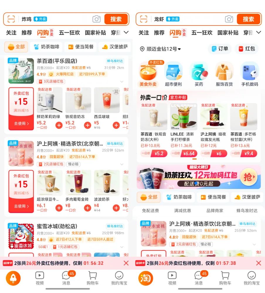 由於消費者及商户積極性超預期,淘寶閃購於5月2日宣佈提前4天全量上線,並給全國用户每人每天發放兩個大額紅包,同時還有品牌商品一口價、免單等長期福利。