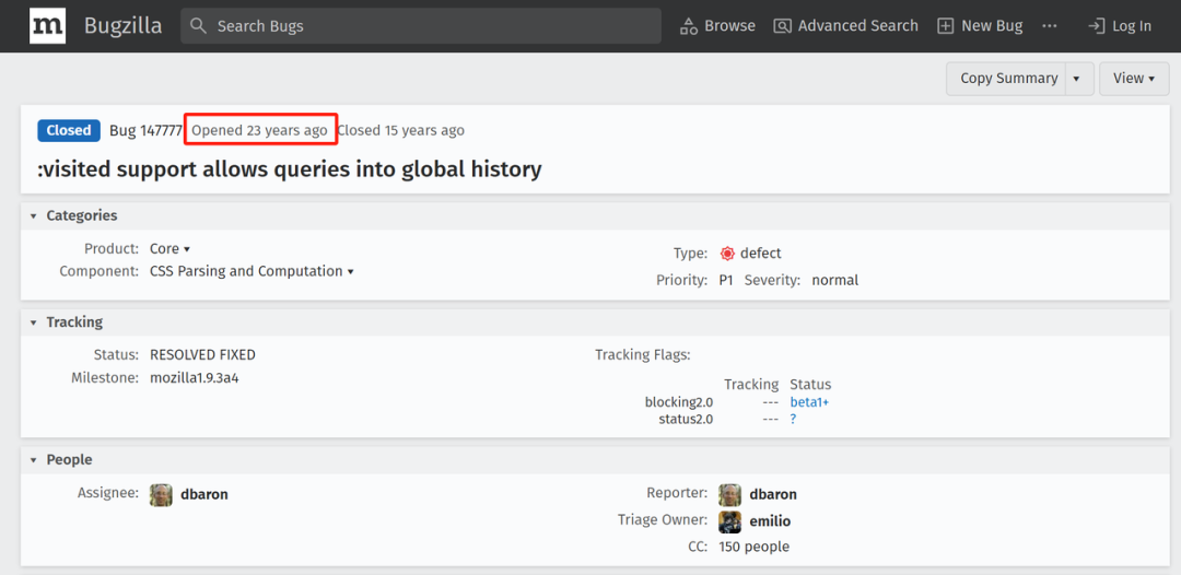 而這麼危險淺顯的一個漏洞,最早在 2002 年就被一個名叫 David Baron 的開發者發現並上傳,迄今已經過去 23 年之久了。。。