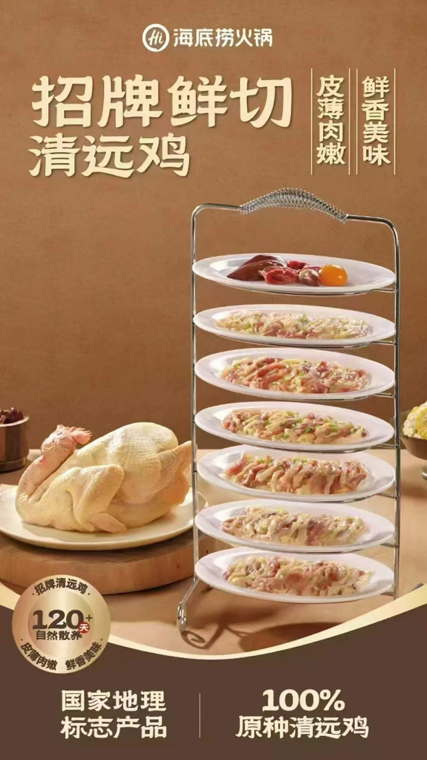 海底撈等知名品牌也開始關注這一賽道。近期,深圳海底撈南山茂業店升級為華南首家鮮切雞肉工坊主題店,廚師在明檔廚房現場分切雞肉,從現切到擺盤全程透明可見,此外,廣深地區的海底撈門店還上線了橄欖雞湯鍋,使用清遠雞骨架、石橄欖和青橄欖熬煮,並提供清遠鮮切雞。