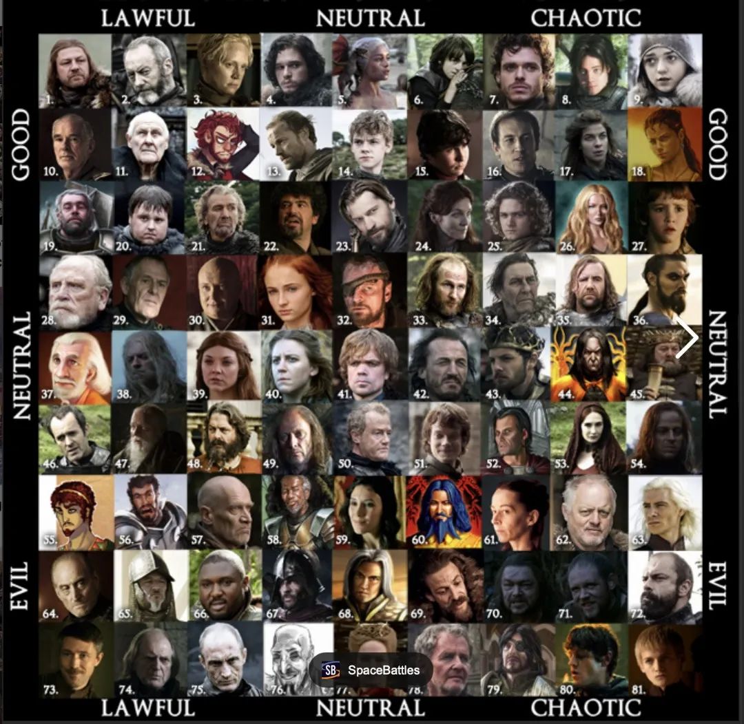 DND的陣營九宮格,對於GOT的眾多角色而言依然奏效
