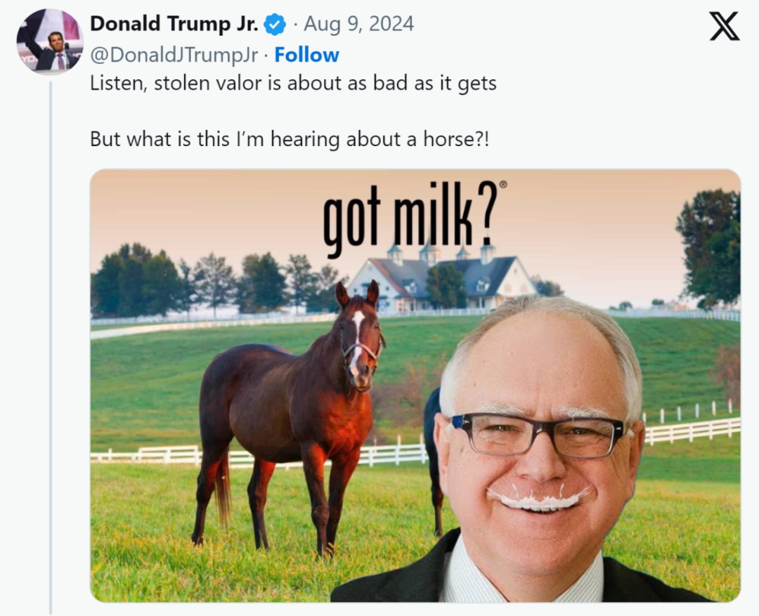 小特朗普曾發佈meme嘲諷沃爾茲,一度把謠言推向高潮。