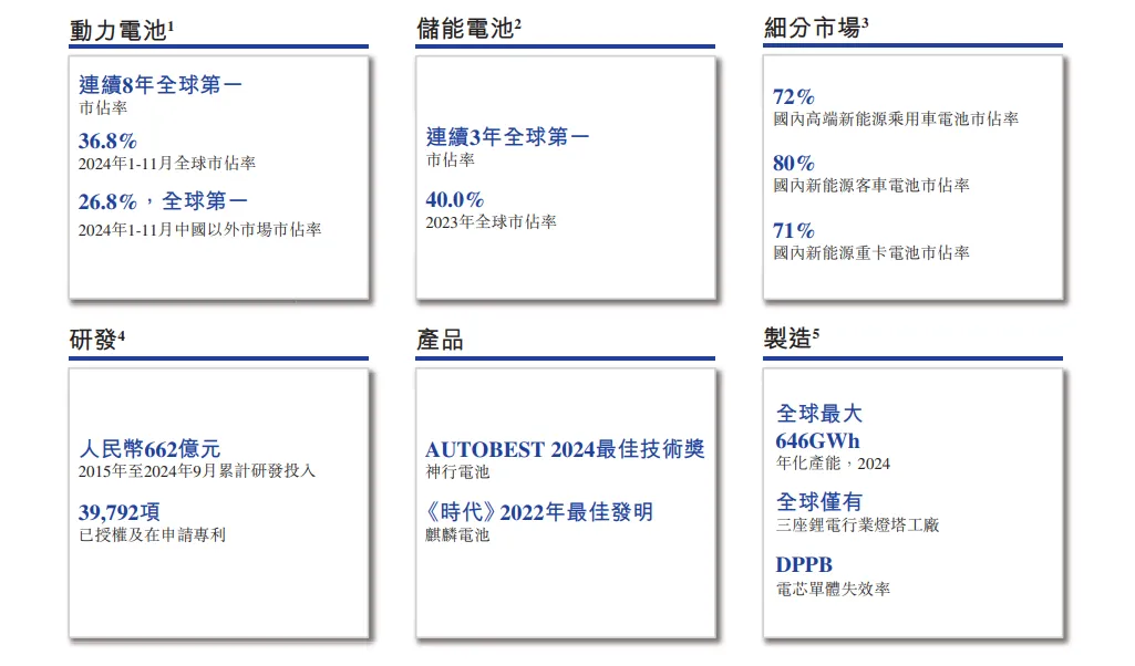 截至2024年9月30日止,寧德時代已在全球設立六大研發中心、十三大電池生產製造基地,服務網點遍佈64個國家和地區。