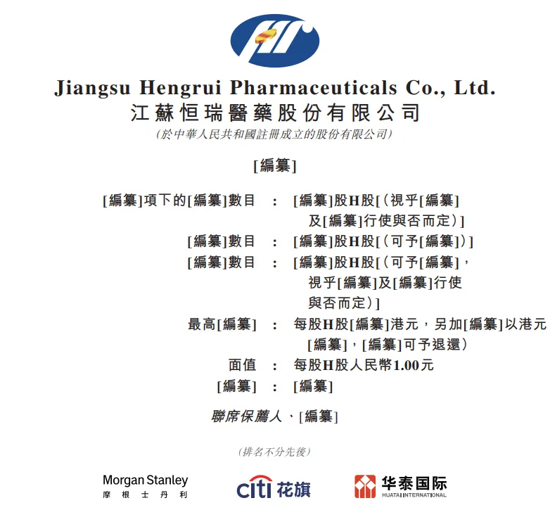 據港交所5月5日披露,江蘇恆瑞醫藥股份有限公司通過港交所主板上市聆訊,摩根士丹利、花旗、華泰國際為聯席保薦人。據證券時報消息,知情人士稱恆瑞醫藥最快可能將於5月正式在港交所掛牌上市。截至4月30日收盤,恆瑞醫藥(600276.SH)報51.10元/股,市值3259.67億元。