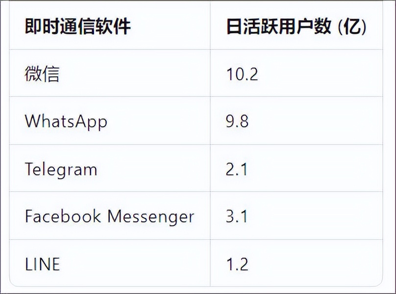 要知道,全球主流即時通信軟件的日活躍用户都在1億以上,微信的日活更是超過了10億。