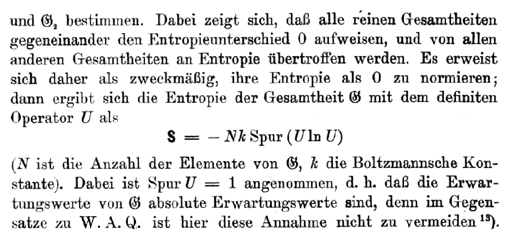 (4) John von Neumann, Thermodynamik quantenmechanischer Gesamtheiten (量子系綜的熱力學), Königliche Gesellschaft der Wissenschaften zu Göttingen,Mathematisch-physikalische Klasse, Nachrichten 273—291(1927).