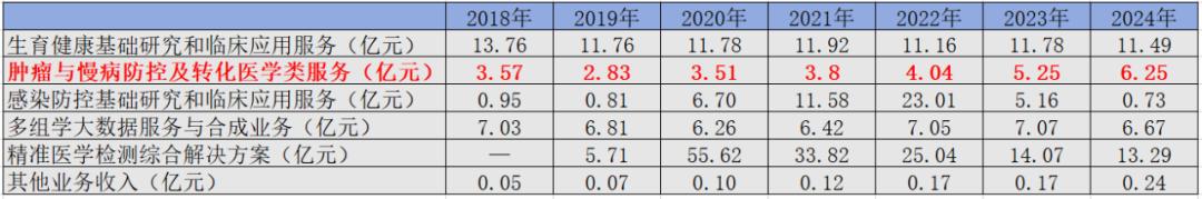 腫瘤與慢病防控業務是這些年華大基因的核心增長點,以超19%的增速成為2024年業績增長最快的業務。其中,腸癌檢測更是成為爆款,營業收入突破2億元,同比增長約270.60%。隨着大眾對於癌症遺傳風險認知的提升,遺傳性腫瘤基因檢測營業收入同比增長約20.03%,多癌種的靶向藥物基因檢測營業收入同比增長約44.50%。