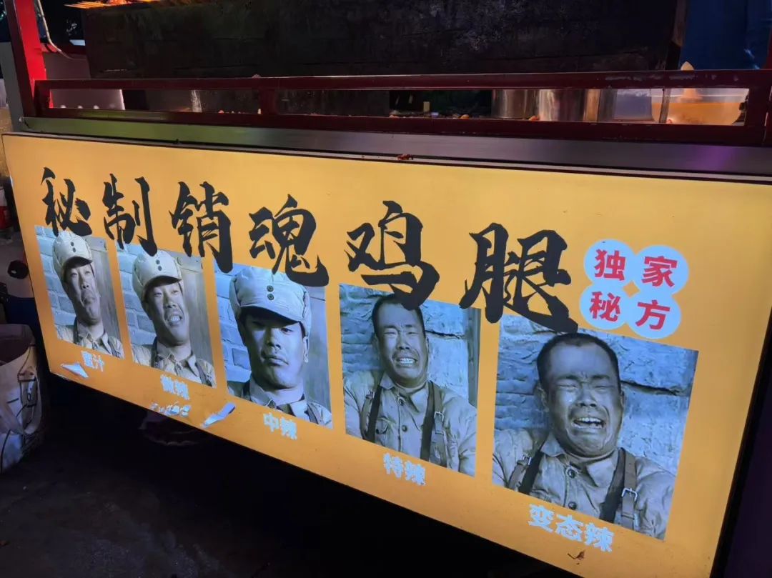 最讓硬糖君震驚的,還是在長沙賣榮昌滷鵝的地攤攤主們。其中有一個,還特意把文和友老闆和滷鵝哥的互動片段剪成鬼畜視頻,在攤位現場輪番播放,喜劇效果直接拉滿。路過的人都忍不住掏出手機,但掏錢買單的就寥寥無幾,生意那叫一個冷清。