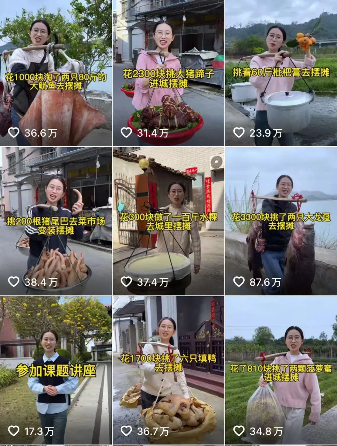 當然,只有極少數博主可以憑藉擺攤日記一炮而紅,比如福建網紅“白菜”,每天挑着不同食材上街擺攤,拆盲盒般的劇情讓其成功累積近670萬抖音粉絲。她已經是擺攤賽道當之無愧的頂流。