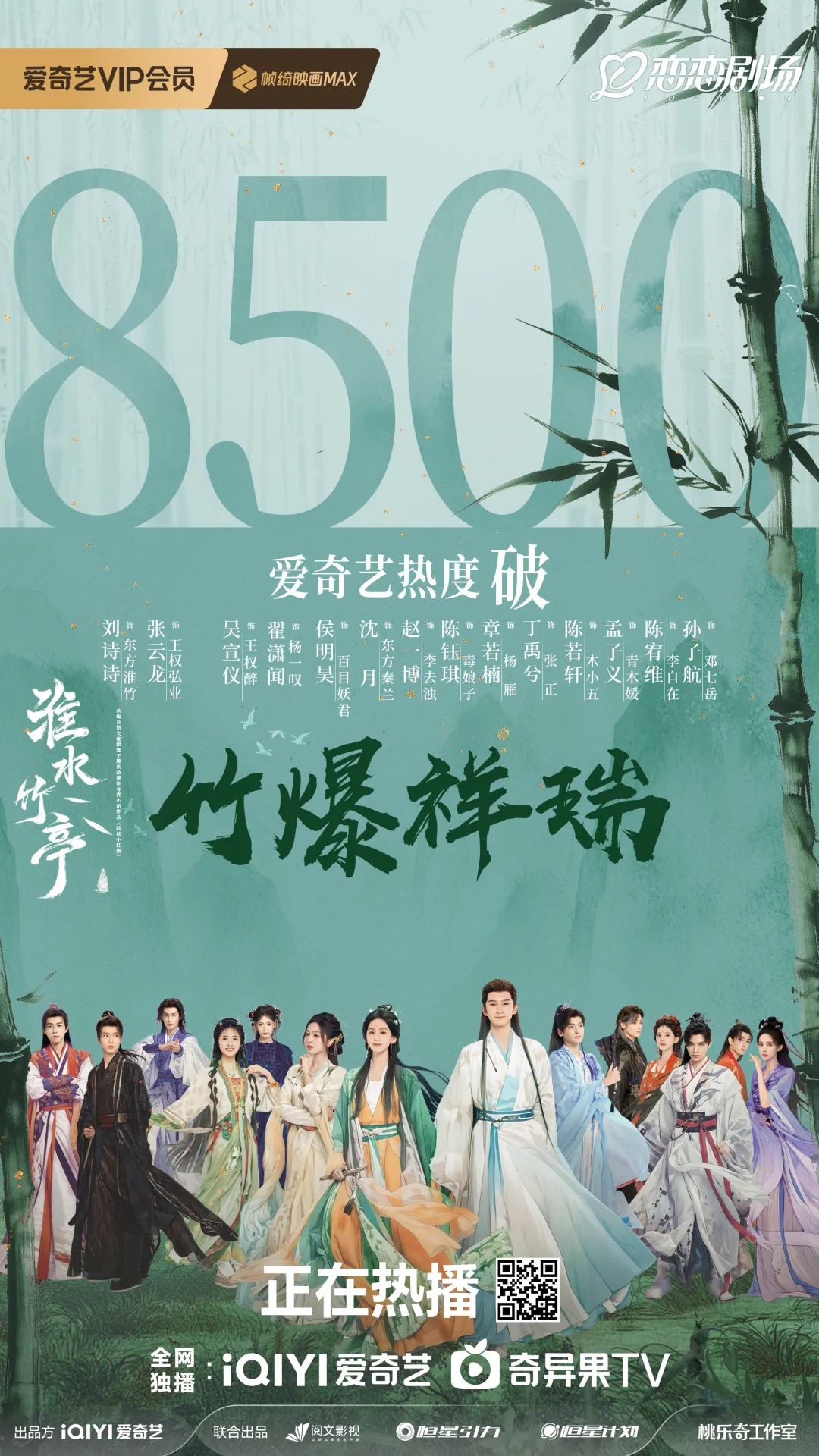 《蒼蘭訣》是2022年愛奇藝熱度最快破萬的劇集,其雲合正片有效播放市佔率一度突破26%,成為當年的現象級熱劇;《永夜星河》播出期間,一度登頂貓眼劇集熱度總榜、雲合數據總榜、微博劇集榜等多個榜單的第一,其官抖粉絲達到658.1萬,創抖音劇集粉絲量有史以來最高記錄。而《淮水竹亭》首日熱度就突破了7500,刷新2025愛奇藝劇集首播熱度記錄。截至毒眸發稿前,愛奇藝熱度已破8500。