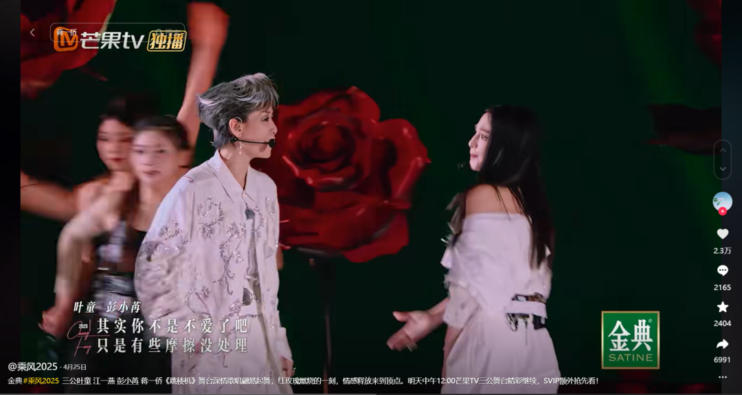 各大綜藝也都開始“蹭熱度”。《乘風2025》選用《跳樓機》作為競演歌曲,遭到葉童組和侯佩岑組的雙雙哄搶。