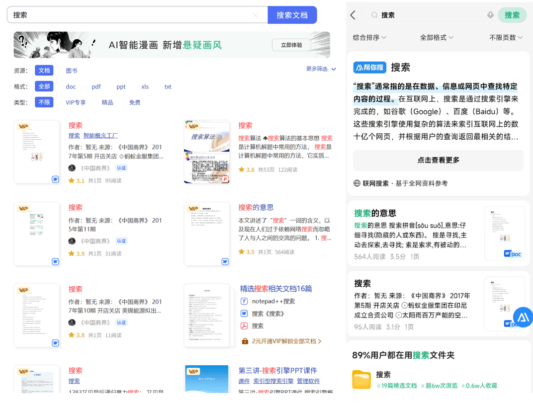 大轉型時代下的AI產品中,當屬夸克與百度文庫對產品原定位顛覆最徹底。而在革新產品體驗的同時,夸克與百度文庫也在經歷AI對原有用户生態的改變。