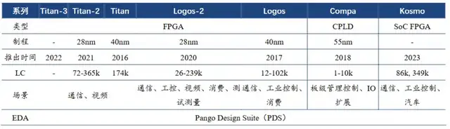 紫光同創的FPGA產品主要分為3大系列:Titan、Logos和Compa系列。