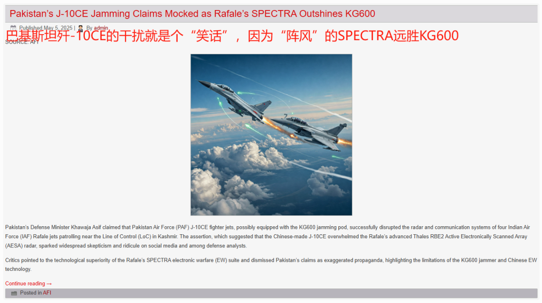 5月5日,印度國防研究網(IDRW)發表了一篇長篇闢謠文章,專門闢謠所謂的“‘陣風’戰鬥機在電子對抗中被殲-10CP壓制”的巴基斯坦軍方表態,大伊萬大概看了一下這篇文章,這篇文章主要表達了這樣幾個觀點: