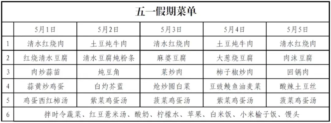 ◎ 北京門頭溝清水鎮政府食堂的五一菜單