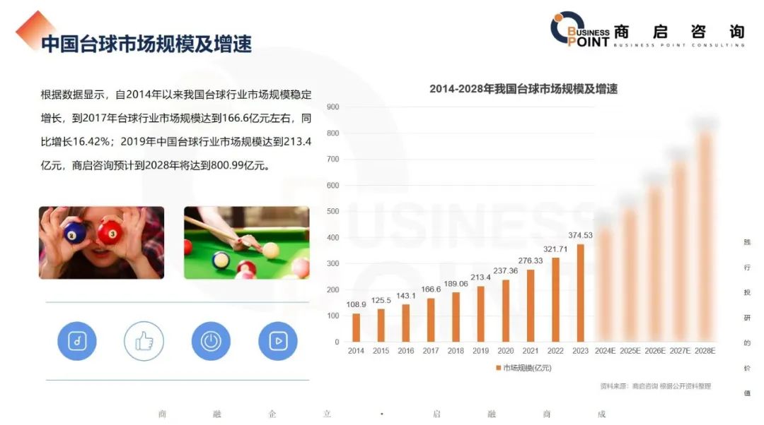 據商啓諮詢發佈的《2024枱球消費經濟行業研究報告》數據顯示,2023年中國枱球市場規模已達374.53億元,預計到2028年達到800.99億元。而據艾媒諮詢統計,2024年1-10月,中國新增枱球相關企業數量達到113994家。行業則普遍公認,目前國內枱球客羣規模超過1.4億、枱球廳數量超過30萬家。如此市場體量對職業枱球界的影響日益舉足輕重。