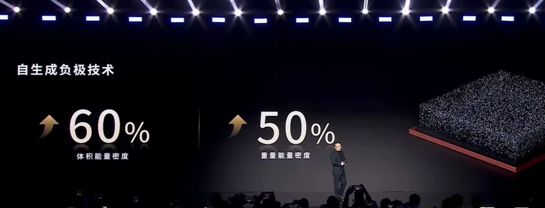 發佈會上的數據顯示,這麼搞下來,他們能讓電池體積能量密度提升 60% ,重量能量密度提升 50% 。