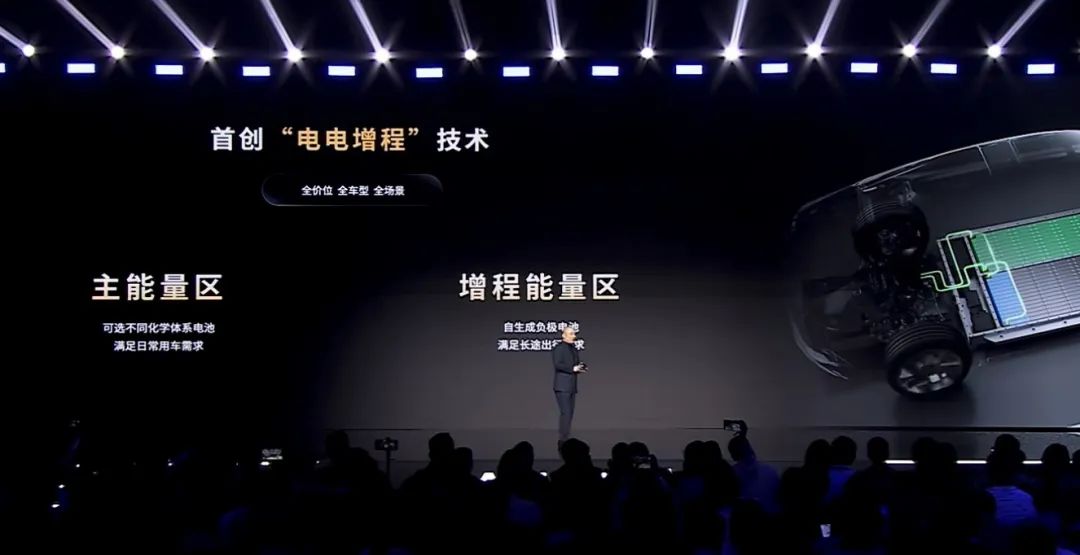 要是碰上長途或者想地板電起步,那你主電池就用高檔點的三元鋰電池;再比如到了冬天,就可以用鈉電池保證低温性能嘎嘎好,同時用增程電池補足能量密度短板,來解決東北老鐵最怕的趴窩問題。想省錢還是想飆車,都自由搭配,豐儉由人。