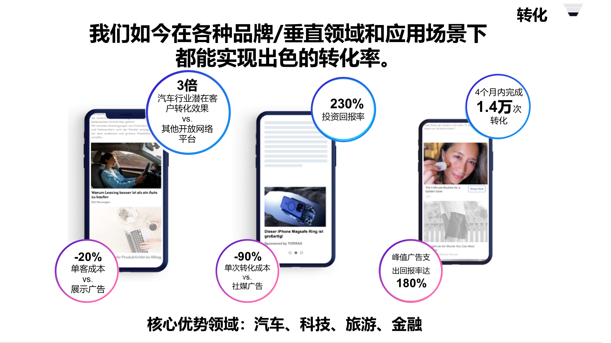 目前,Teads已在多個品牌、行業和應用場景中實現了卓越的轉化效果,特別是在汽車、科技、旅遊與金融領域。