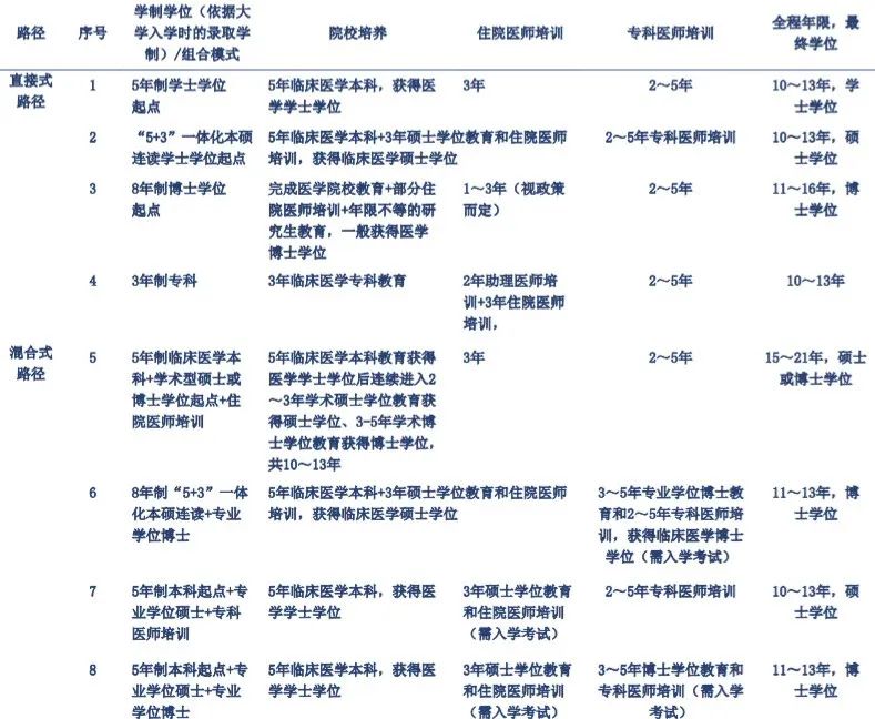 圖1中國醫學培養的主要學制學位和培養路徑 | 來源[1]