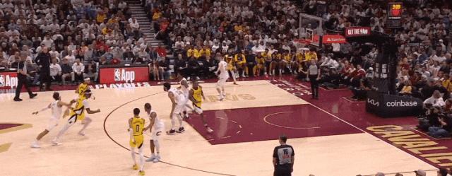 阿倫扣籃後,哈利伯頓追身反擊2+1。騎士領防哈利伯頓,內姆哈德+哈利伯頓擋拆打阿倫2+1。西亞卡姆趁阿倫退防不及一條龍打米切爾2+1。