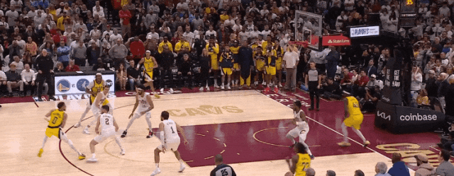 暫停回來,追夢又一個弧頂三分,勇士打出17比0;裏德剛滾地龍還一個,吉米又喂追夢一個三分,36比22。