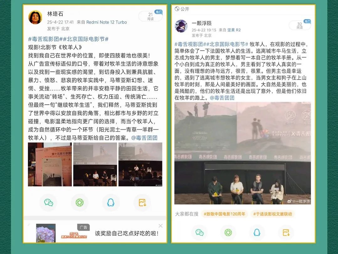 在她們看來,觀影團承擔着電影節與不同觀眾羣體之間的橋樑角色,只有拓寬受眾邊界,打破行業壁壘,才能真正助力電影節“出圈”,探索更開放、多元的傳播路徑。