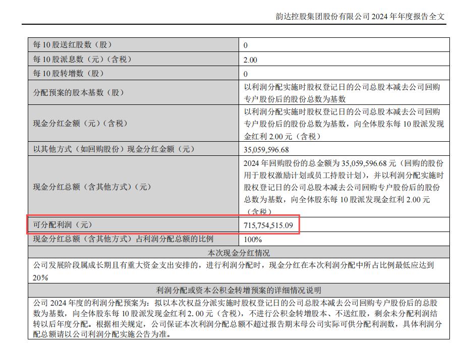 翻開韻達股東名單,聶騰雲個人持股2.77%,並通過控制持股52.10%的第一大股東上海羅頡思投資管理有限公司(其個人佔股70%),實際掌握公司核心股權。結合韻達2024年上半年4.9億股東分紅總金額以及剩餘未分配的7.16億未分配的利潤看,聶騰雲通過股權獲得的收益遠超賬面薪酬。