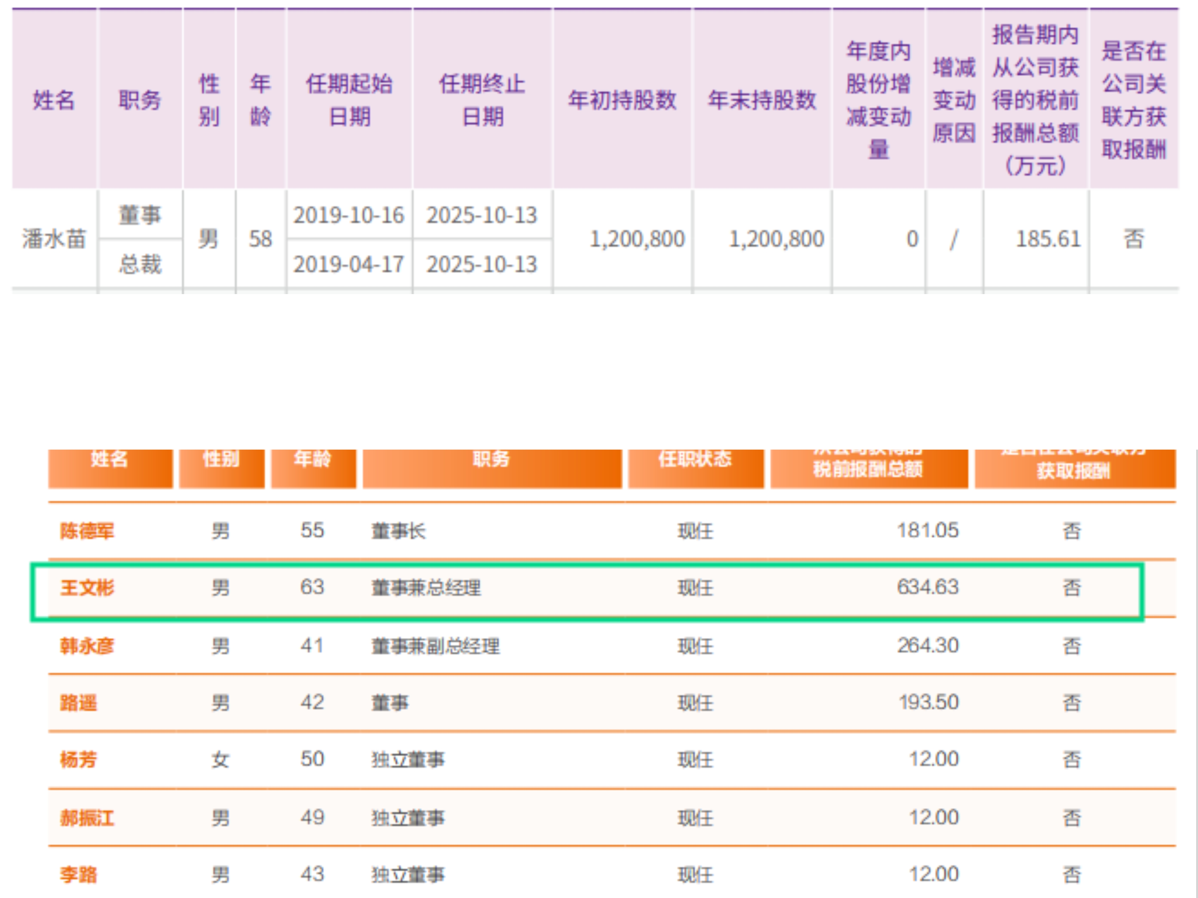 圓通總裁潘水苗,自2019年4月起擔任公司總裁,2024年税前報酬總額為185.61萬元,其他高管年薪在15萬至200萬區間,形成與企業規模相匹配的市場化定價體系。