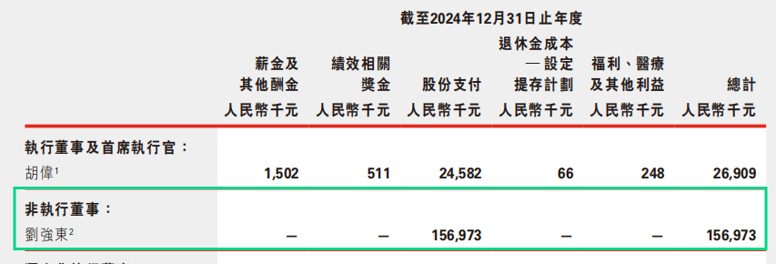京東物流創始人劉強東年度收入超1.5億元,佔董事層總薪酬(1.86377億)的84.2%,這部分收入完全來自股份增值,無任何現金薪酬成分。作為京東集團實際控制人,劉強東持有京東集團37,374,550股A類股,及305,630,780股B類股,一共持有343,005,330股,控制11.7%股權及71.7%的投票權,其收入本質是企業估值增長的市場化兑現。