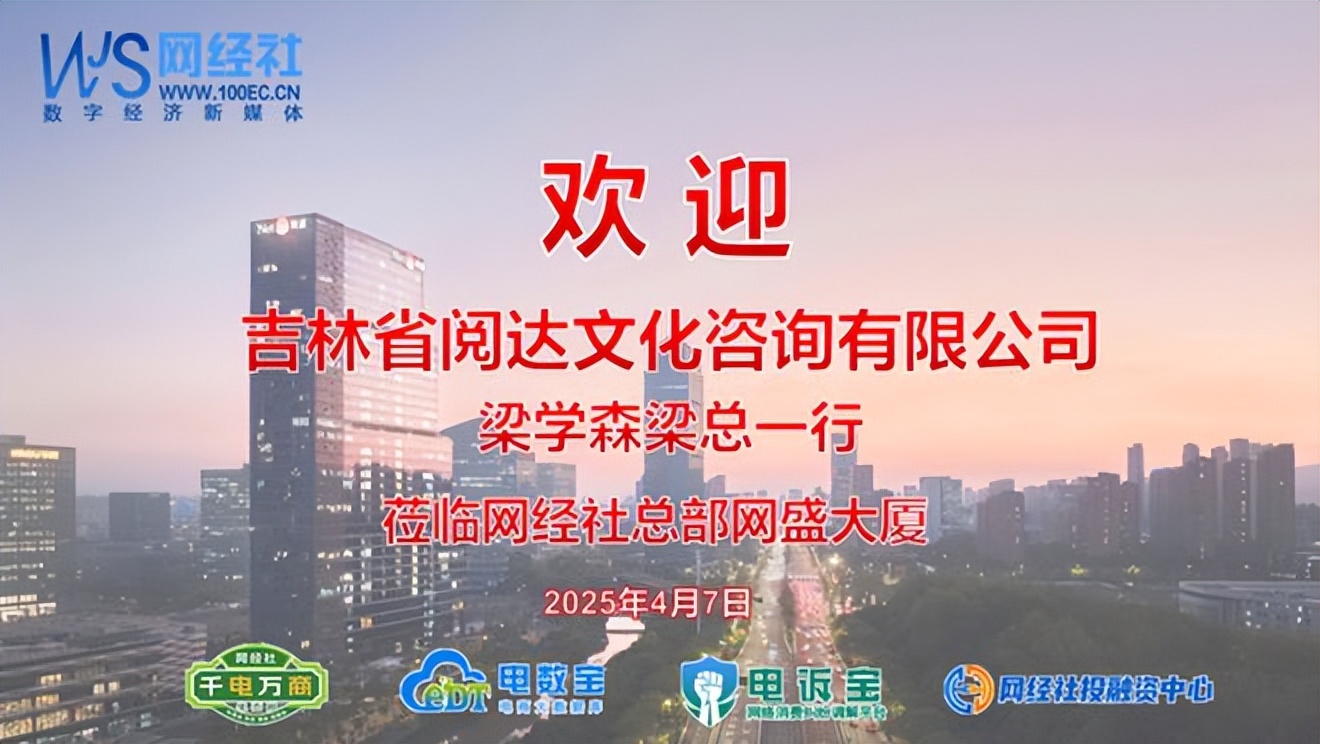 4月7日,吉林省閲達文化諮詢有限公司梁學森梁總一行蒞臨網經社總部網盛大廈參訪交流,網經社創始人曹磊等進行接待。