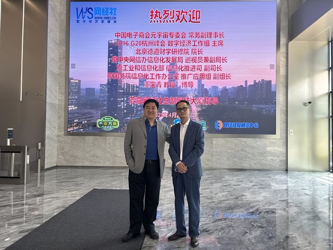 4月23日,中國電子商會元宇宙專委會 常務副理事長,2016G20杭州峯會數字經濟工作組主席,原國務院信息辦副組長,原工信部副司長董寶青蒞臨網經社總部網盛大廈參訪交流,網經社創始人曹磊等進行接待。雙方就元宇宙電商、會員發展、活動舉辦、智庫研究、項目合作、招商引資等話題進行了深入探討,並達成了戰略合作意向。