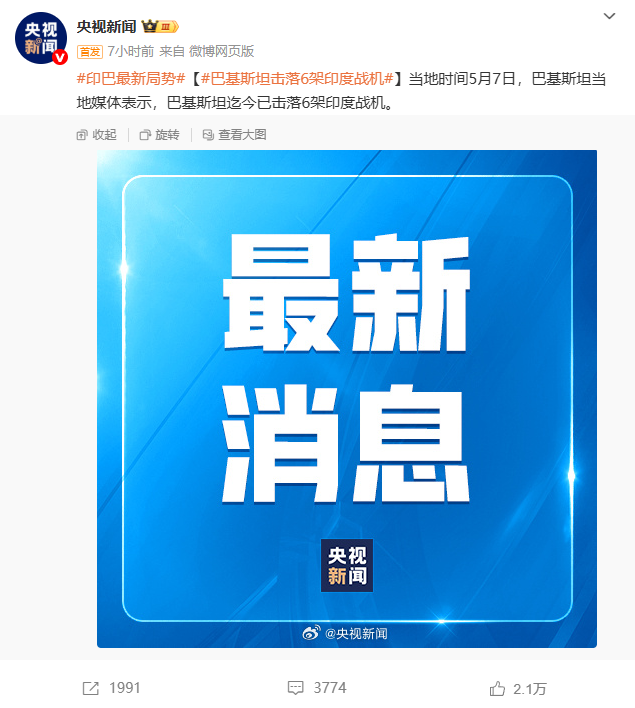據新華社消息,當地時間5月7日凌晨,印度空軍出動戰鬥機,對巴基斯坦控制克什米爾地區、旁遮普邦的幾個地點發起大規模導彈進攻。據稱,印軍使用了空地導彈,打擊目標包括旁遮普邦巴哈瓦爾布爾的蘇布汗清真寺,巴控克什米爾首府穆扎法拉巴德等地的目標,造成多名巴基斯坦平民傷亡。