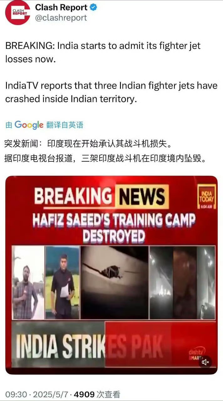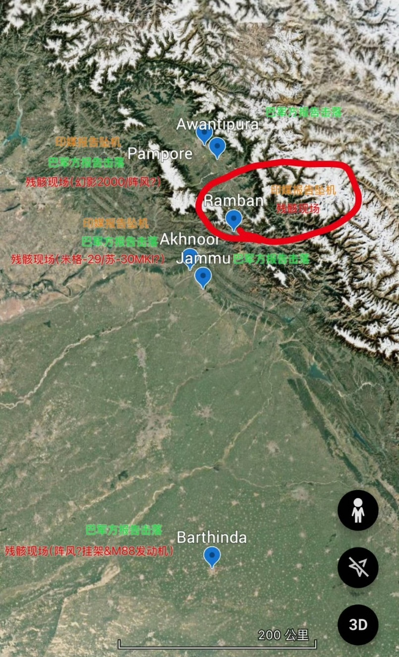 最新的報道顯示法國政府要求印度立即停飛其陣風戰鬥機,因為巴基斯坦空軍昨天擊落了3架。目前棉花絮個人判斷有架燒糊了看不清楚是陣風戰鬥機還是幻影2000,也就是説印度確認被擊落的是4架戰鬥機,分別是2架陣風, 1架MIG29,1架SU30MKI,還有1架是幻影2000或者陣風。