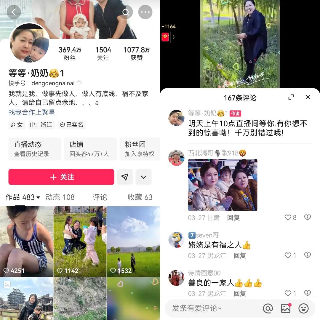 抖音超頭主播小楊哥,就曾帶着父母進入主播間帶貨,靠着搞笑的家庭內容賣出各種商品;快手超頭主播辛巴,則是媽媽親自下場,在快手做賬號、開直播,用辛巴的流量做起自己的生意;董宇輝,則背靠“丈母孃”粉絲,登上抖音超頭主播的寶座……交個朋友、東方甄選等直播間,同樣打造過針對中老年羣體的直播專場,為銀髮人羣服務。
