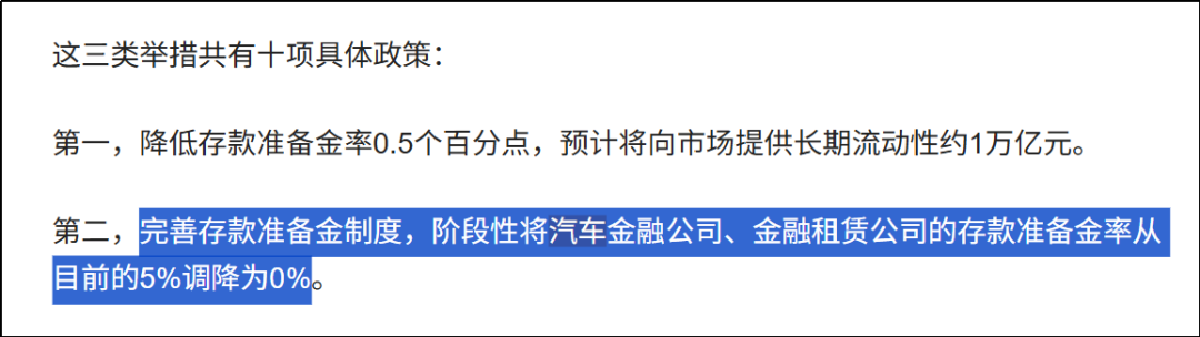 而汽車金融公司的存款準備金率直接調降為0%,背後對於汽車產業鏈的支持力度可見一斑