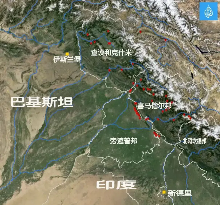所以我們看到,自兩國獨立以來印度已在其境內的印度河及其支流上修建了50多座水壩,其中只有1/5在印控克什米爾境內,而且全部沒有引水設施▼