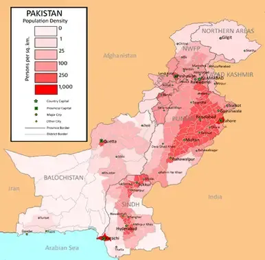 巴基斯坦人口分佈圖水權問題便是巴基斯坦不可能和印度談判分割克什米爾的原因所在。