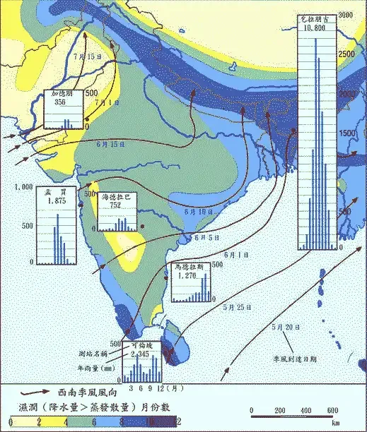 南亞降雨量形式圖從上面一張圖,可以看出,誰控制了印度河上游,誰就可以控制巴基斯坦的水源(通過修水壩),也就控制了巴基斯坦的糧食產量。而這個上游就是克什米爾。