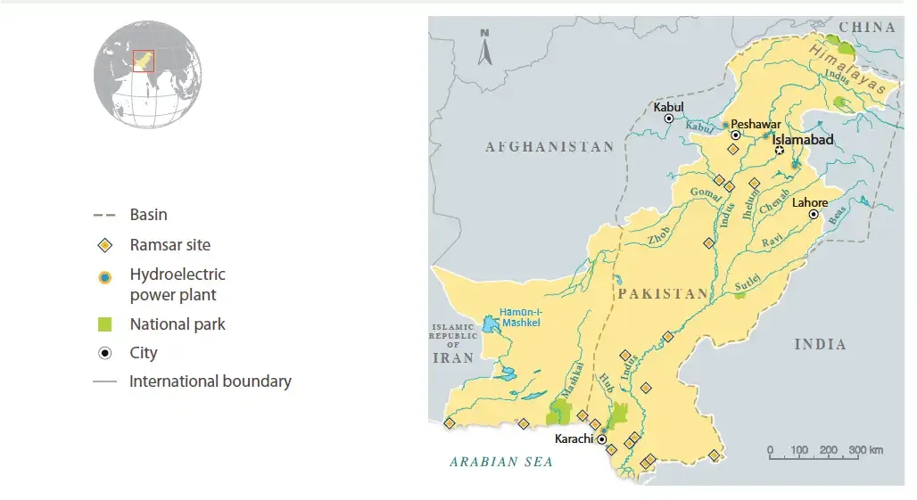 印度河流域圖可以看到,巴基斯坦農業區與印度河流域是高度吻合的。原因是南亞季風吹不到巴基斯坦,如果沒有印度河的水,那麼巴基斯坦就會如同一緯度的撒哈拉沙漠一樣一片黃沙。